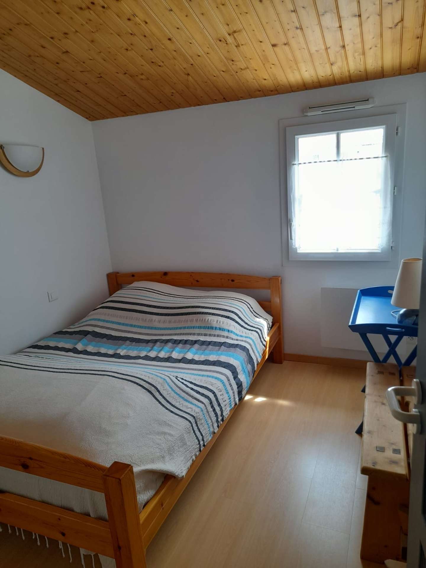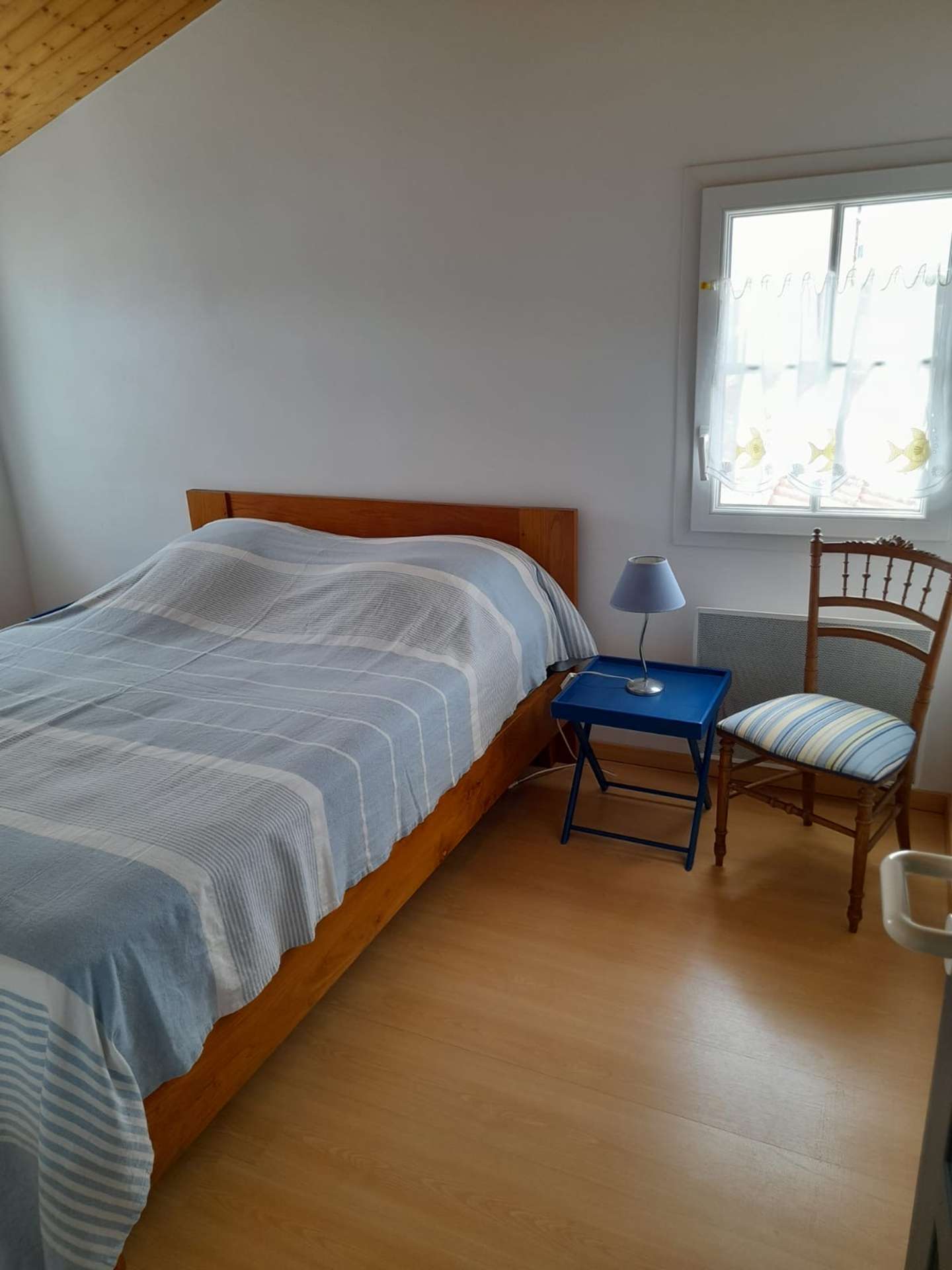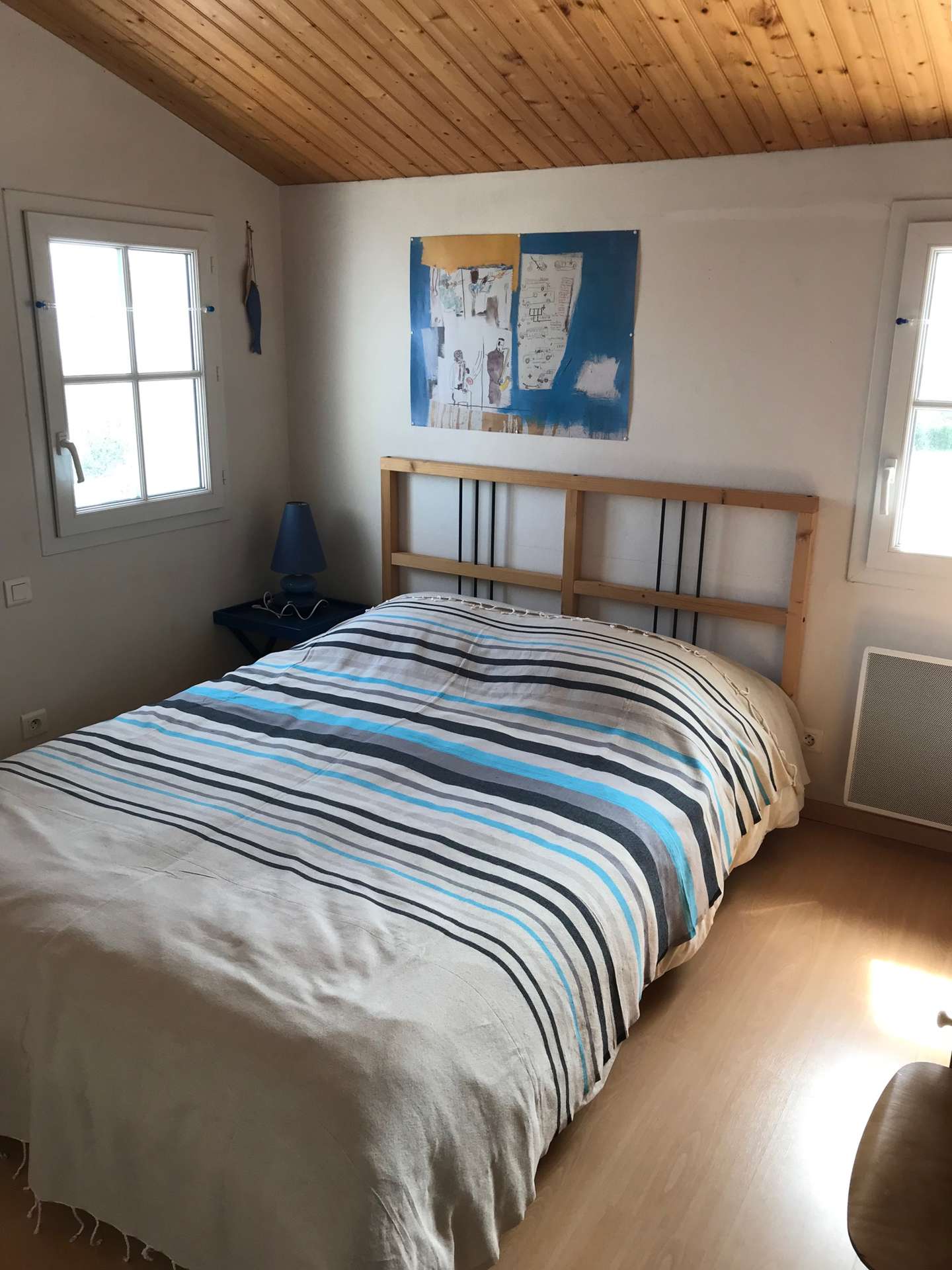 Maison 6 pièces - 150 m² environ- jusqu’à 10 personnes Située à 400 m de la plage et à 400 m du bourg de la Guérinière, cette jolie maison de vacances se compose en rez de chaussée, d'un séjour, d'un coin cuisine équipé, un cellier (réfrigérateur, congélateur, MO, placard), une chambre avec un lit double en 140 avec salle d'eau avec baignoire et douche, un wc indépendant et une chambre avec deux lits une place superposés. L'étage comprend trois chambres avec des lits de 140 chacune et une salle d'eau avec wc.
