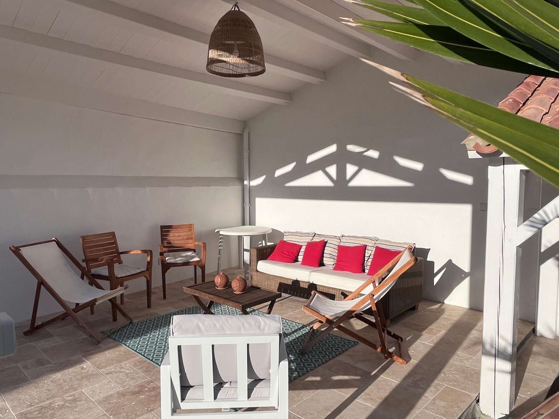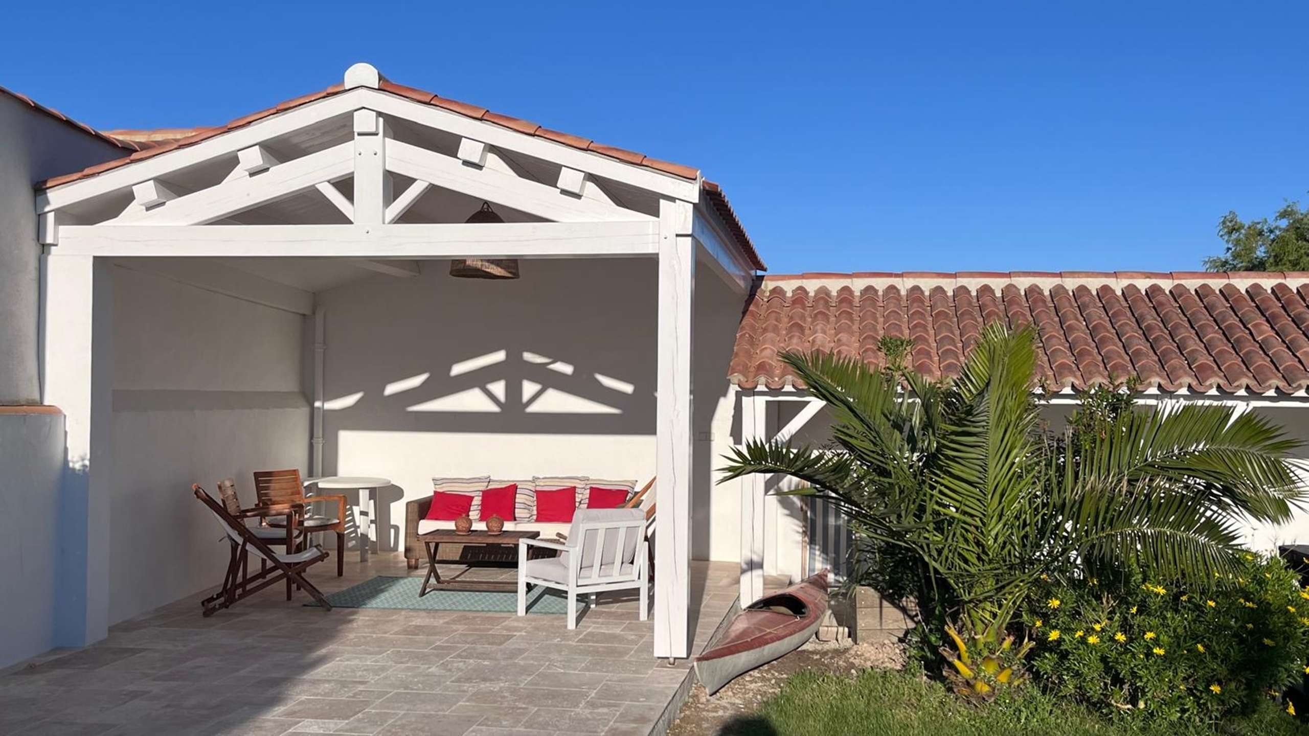 Les Plus de cette location à la mer : Vous bénéficiez d'un beau jardin clos et arboré avec terrasses bois avec salon de jardin et voile d'ombrage.